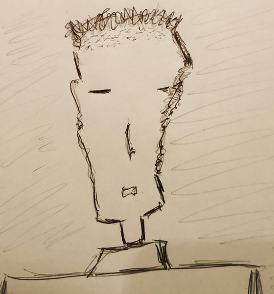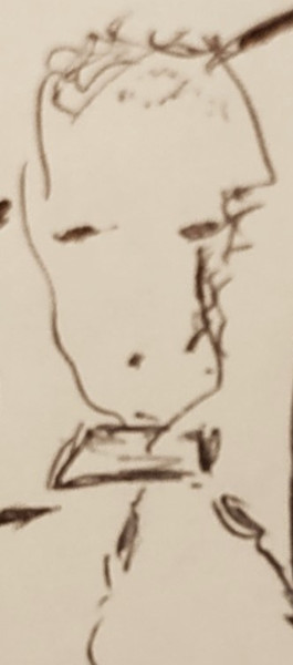 Côté droit CHEVEUX BRUNS COURTS, côté gauche RASÉ / CREVASSES, VISAGE globalement DÉFORMÉ